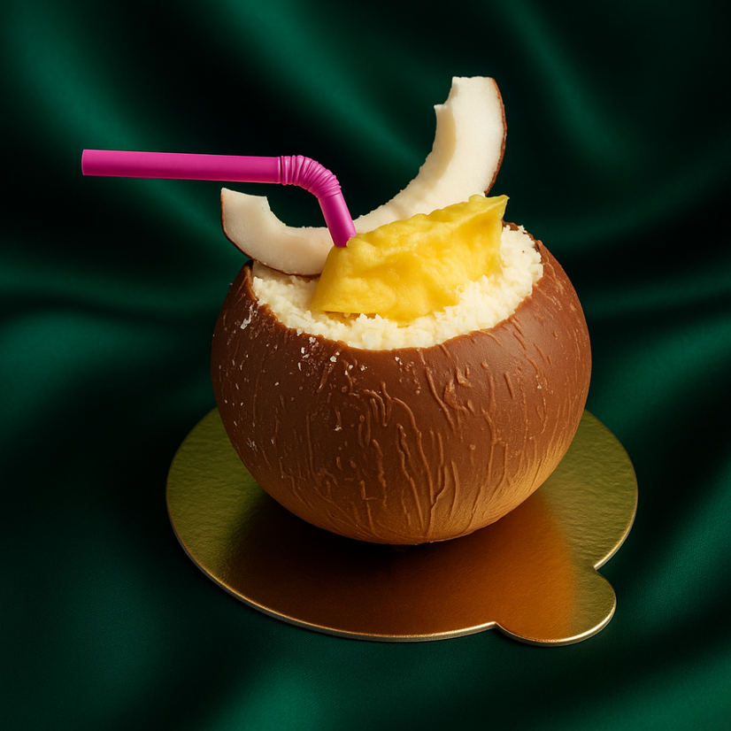 Мус з кокосовими вершками, мангово-лаймовий соус, шматочки ананаса, лікер "Малібу"